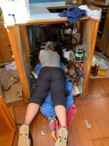 So now, we don’t have a sink or an engine in the boat. Why? What’s happened to the sink? Basically, nothing… simply the engine room is under the sink.