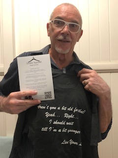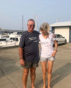 Jo and Tim wearing their “What are you waiting for Live your life” t-shirts.