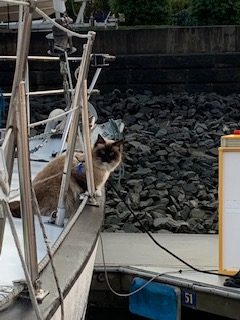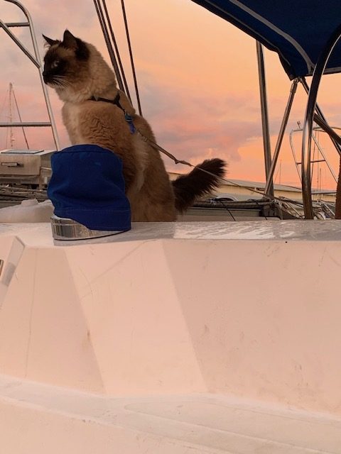 Probably the first significant transition moment for me was seeing Zac (our cat) explore and settle into the boat. I could feel my face break out into the hugest grin as he placed his paws on the edge of the cockpit and looked out. Not out of fear (certainly cautious) but out of curiosity. And I felt myself sigh with relief. We had spoken with the vet who had provided us with a stash of anti-anxiety tablets, which we only ended up using on the day we moved.