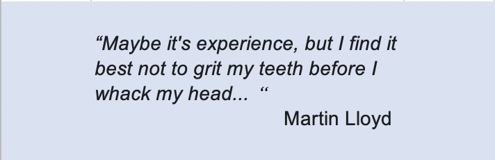 Martin Lloyd to me: “Maybe it’s experience, but I find it best not to grit my teeth before I whack my head…”