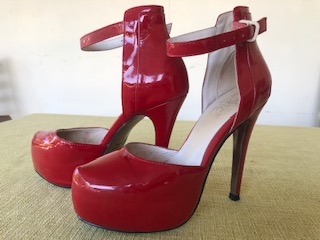 Specifications Brand: She Heel height: 5” or 12.6cm Colour: Patent leather red Purchased: Some Spanish influenced shop on Adelaide Street Brisbane