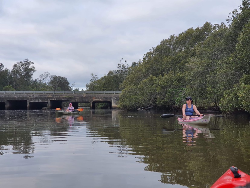 Megan had just arrived, our neighbour Dan joined us along with the three dogs. Megan and I realised we have known each other for 15 years and are enjoying the fact that we are living close to each other again. We were briefly flat mates and later lived in the same street. Our first paddle together was the previous weekend. We took a different path this time, paddling out of the marina and up an inlet of the Coomera River.