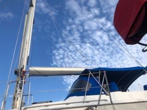So, I sat on the deck and enjoyed the stillness of the morning. I imagined what it will be like getting up every morning and bringing my cuppa up and watching everything and nothing. Every time a fish jumped out of the water I missed it, only catching the concentric ripple of evidence they left behind them. I noticed, people leaving their boats dressed for work. I remember to look at our new rigging. Two women paddled back to the shore in their single woman outriggers. They must have left early. One was lefthanded, one was right minded.